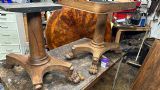 There was extensive damage to the veneers which were lifting so required gluing & patching. Due to previous bad restoration the tops required bleaching as the lovely mellow colour much loved in rosewood had been sanded right though resulting in deep black areas. When the patches were all leveled the surfaces were stripped then the tables traditionally hand French polished with special pale polish then when built up with a full grain left to harden for a week was then dulled & wax polished resulting in a nice mellow finish.