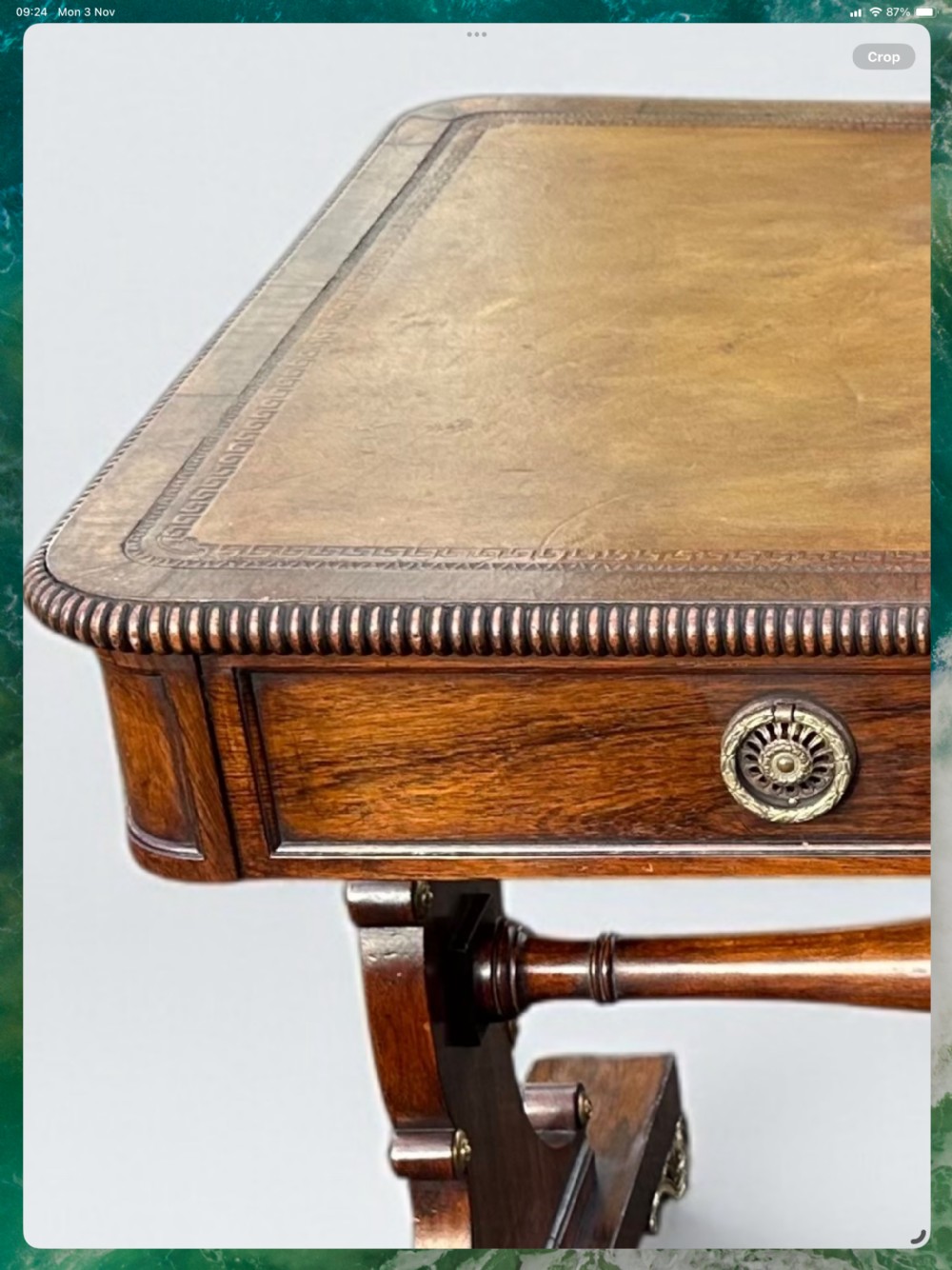 A superb matching pair of Regency rosewood & brass mounted writing tables. With a single frieze drawer to one side & dummy to the rear. Scrolled feet with concealed castors. I have been established as a dealer and antique furniture restorer for almost 20 years. I have a real love and passion of fine 18th and early 19th century furniture. As a professional restorer I am always searching for the finest quality and original items but should any restoration be nessesary it will be sympathetically and skilfully carried out in house by myself. If items are purchased with buy now option I shall do my very best to work with my courier to offer free delivery within most of UK mainland. (Some exclusions to locations may apply) It has been noted that the system is rounding up measurements added in cm to the next nearest inch so if dimensions are critical for a particular space please work by the cm size listed of please ask.