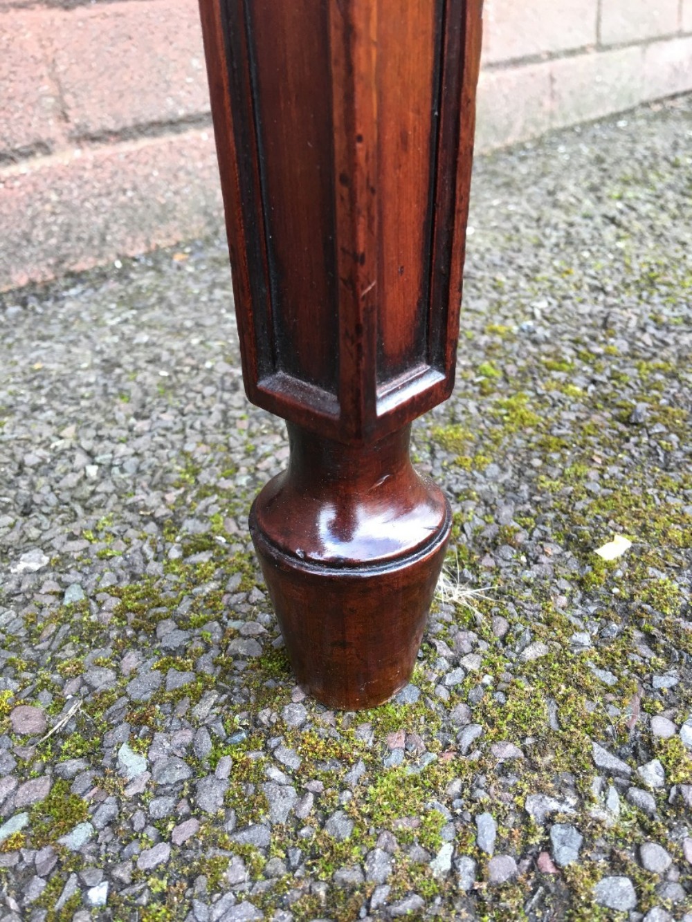 The mahogany frieze is decorated with oval mahogany medallions and sits on four box fluted & tapering mahogany legs which terminate on turned toupe feet.