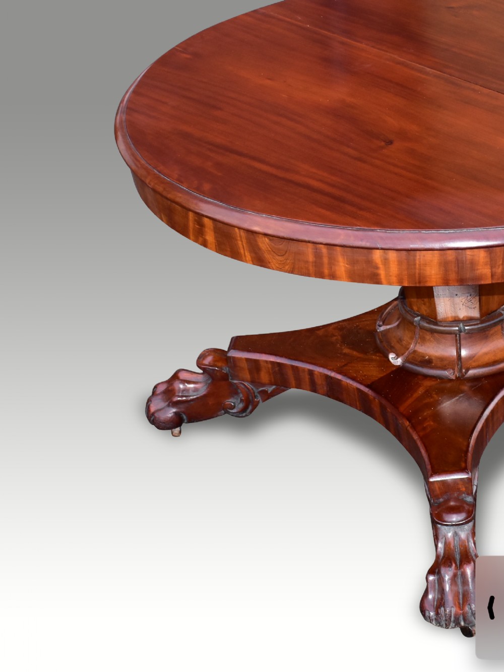 This wonderful quality Regency mahogany circular dining table which opens to accept 1 or 2 leaves.